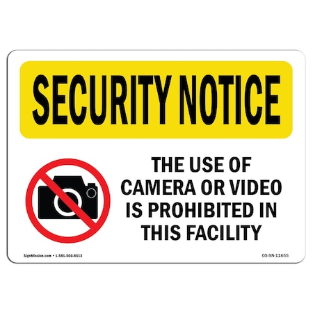 OSHA SECURITY NOTICE Sign, Use Of Camera Or Video Prohibited, 18in X 12in Rigid Plastic