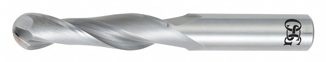 Ball End Mill, 10.00 mm Milling Dia., Carbide, Bright (Uncoated), Non-Coolant Through