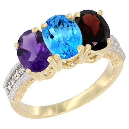 This Gorgeous Ring is made of solid 10K Gold set with All-Natural Gemstones and accented with Genuine Brilliant Cut Diamonds. Three Different exciting colors to choose from! Available in sizes 5 to 10 with half sizes. Placement arrangement of gemstones may be requested. Just send us an email with yo