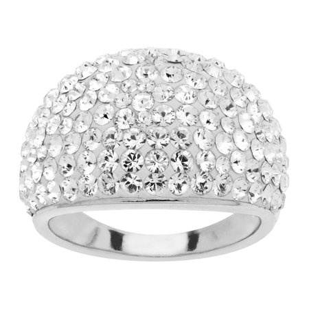 A wash of icy brilliance turns this streamlined ring into a fashion-forward showstopper! A panel of white Swarovski crystals blankets the piece with a pure radiance in a band of sleek sterling silver. Ring face measures 5/8 inches in width.