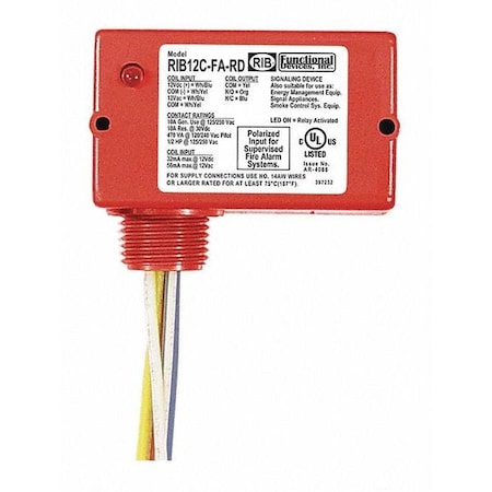 Functional Devices RIB12C-FA-RD Polarized Relay, 10 Amp SPDT, 12 Vac/dc Coil, Red Housing