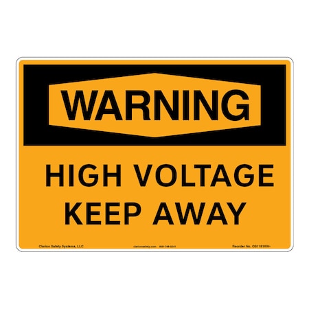 <p><strong>Word Message: </strong><br />HIGH VOLTAGE KEEP AWAY</p> <p><strong>Description: </strong><br />Clarion Safety Systems brings you Warning High Voltage Keep Away safety signs (OS1161WH-) which are produced on premium plastic or aluminum material and are designed to meet your OSHA safety sign needs.<p><strong>Material Information:</strong></p> <ul> <li><strong>Material</strong>: (ZA) Indoor/Outdoor Flexible Polyester</li> <li><strong>Base Materials</strong>: 3M .002 premium white polyester</li> <li><strong>Overlaminate</strong>: 3M .002 matte vinyl</li> <li><strong>Mounting Option</strong>: 3M Premium Structured Acrylic</li> <li><strong>Application</strong>: Indoor/Outdoor</li> <li><strong>MaxTemp</strong> (F): 225</li> <li><strong>MinTemp</strong> (F): -20</li> <li><strong>Chemical Resistance</strong>: Excellent</li> <li><strong>UV Resistance</strong>: Good</li> <li><strong>Outdoor durability</strong>: Excellent</li> <li><strong>Storage Stability</strong>: Stable. Optimum storage conditions: 72 F @ 50% relative humidity</li> <li><strong>Expected Life Indoor</strong>: Long term</li> <li><strong>Expected Life Outdoor</strong>: 3-5 year (expected outdoor life may vary due to climatic conditions)</li> <li><strong>RoHS</strong>: Yes</li> <li><strong>CRoHS</strong>: Yes</li> <li><strong>REACH</strong>: Yes</li> </ul>