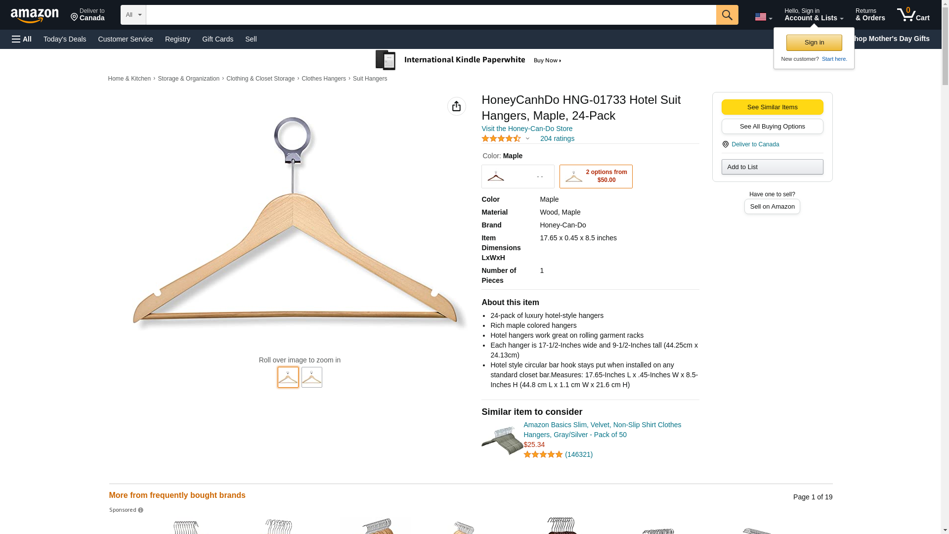 HoneyCanhDo HNG-01733 Hotel Suit Hangers, Maple, 24-Pack