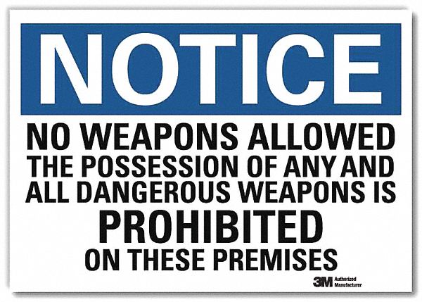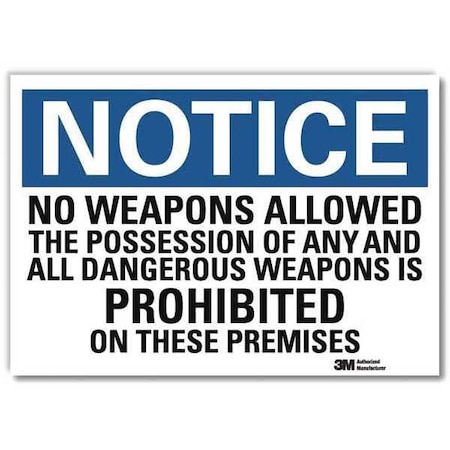 "Notice - No Weapons Allowed, the Possession of Any Dangerous Weapon is Prohibited on These Premises" Label by SmartSign | 7" x 10" 3M Reflective Laminated Vinyl