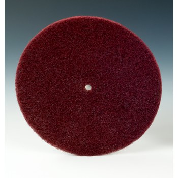 3M Scotch-Brite LD-DC deburring disc uses aluminum oxide as the abrasive material and has a diameter of 8 in. Since this product is non-woven, grade is generally used to describe the abrasiveness; with the 00677 having a very fine grade. The arbor attachment allows for easy mounting to the tool or pad. All abrasive products that rotate or spin, such as the ones in this category, have a maximum speed at which you can run them. This 3M deburring disc can be run at a maximum speed of 3000 RPMs.