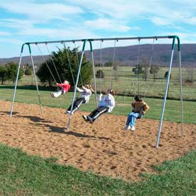 PBP-8-2SC-GRN Color: Green Features: -For ages 5-12. -Requires an ASTM use zone of 528" x 300". -Commercial tot seats and commercial strap seats in black, swing hangers, factory-installed, closed S hooks are welded chain are also included. -UPlay Today collection. -Recommended for Commercial Use. Product Type: -Swing set and swing accessories. Age Group: -5-9 Years/9 Years and up. Primary Material: -Metal. Dimensions: Overall Height - Top to Bottom: -96". Overall Depth - Front to Back: -72". Overall Product Weight: -425 lbs. -2.38" Diameter legs. Overall Width - Side to Side: -296".