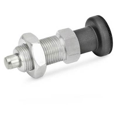 GN 617-NI Series Stainless Steel Non Lock-Out Type Inch Size Indexing Plunger with Plastic Pull Knob, with Lock Nut, 1/2"-13 Thread Size, 0.79" Thread Length