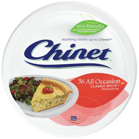 <br /> <b>Chinet® All Occasion Paper Plates Classic White? 36 Count:</b> <ul> <li>Eco-friendly</li> <li>Made from recycled materials and compostable</li> <li>Nothing Stacks up to Chinet®; Made in the USA</li> <li>Kosher </li> <li>Can be used at home daily, during barbecues or at the office</li> <li>Made to be both leak and cut resistant</li> <li>Contains 36 white Chinet paper plates</li> </ul>