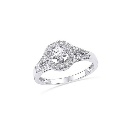10k White Gold Womens Round Diamond Halo Bridal Wedding Anniversary Engagement Ring 3/8 Cttw