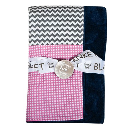 <ul> <li>Perfectly Pretty Receiving Blanket <br /> Patches: Pink and Gray Stripe, Pink and White Gingham, Gray with White Dot, Navy with White Dot, Gray and White Chevron; Blue Microplush Back<br /> 32" x 40"<br /> Front: 100% cotton<br /> Back: 100% polyester<br /> Machine wash cold with like colors, gentle cycle<br /> Do not bleach<br /> Tumble dry low or line dry<br /> Do not dry clean</li> <li>Products of Sams Club, Walmart</li> <li>https://www.samsclub.com/sams/receiving-blanket-pp-perfectly-pretty/prod20090281.ip?xid=plp4790101-baby:product:1:25</li> </ul>