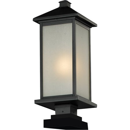 Clean, straight lines and rectangular detail define the classic styling of this large outdoor post head. White seedy glass panels create an elegant glow, while the cast aluminum hardware finished in black can withstand nature's seasonal elements. <br /> <br /> <ul> <li>Setting: Outdoor</li> <li>Fixture finish: Black</li> <li>Shades: White Seedy Glass</li> <li>On/off: Line switch</li> <li>Number of lights: One (1)</li> <li>Requires one (1) 100-watt medium base bulb (not included)</li> <li>Dimensions: 8 inches wide x 24.5 inches tall x 8 inch extension</li> </ul> <br /> <b><i>Assembly required.</i></b> <br /> <b><i>This fixture does need to be hard wired. Professional installation is recommended.</i></b> <br />
