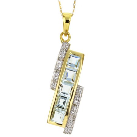 <ul> <li>Contemporary pendant showcases a channel of aquamarines surrounded by two streams of diamonds</li> <li>Elegant jewelry is crafted of two-tone 14-karat gold</li> <li>Gorgeous geometric necklace is an excellent accessory any look</li> <li>White gold detailing enhances the icy sparkle of the diamonds</li> </ul>