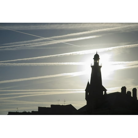 Posterazzi Airplane Contrails Above Lighthouse Poster Print, (17 x 11)
