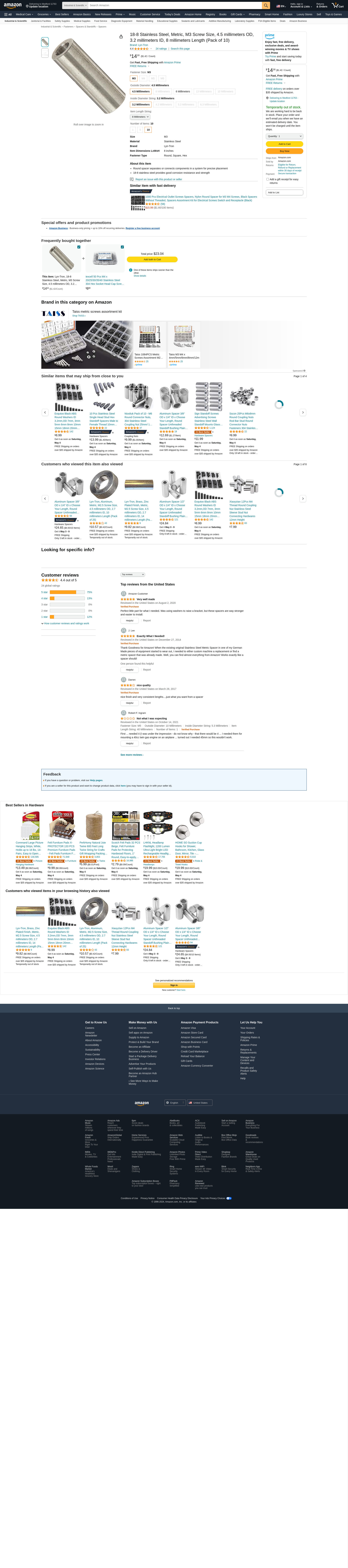 Lyn-Tron, 18-8 Stainless Steel, Metric, M4 Screw Size, 8 millimeters OD, 4.2 millimeters ID, 10 millimeters Length (Pack of 5)