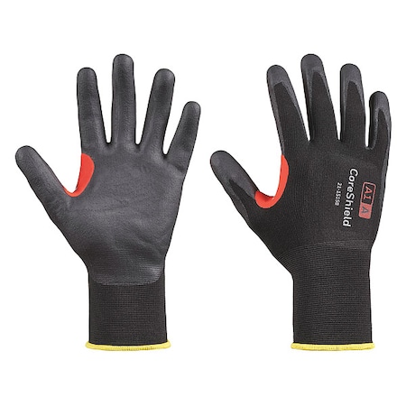 CUT-RESISTANT GLOVES, CORESHIELD, 15-GAUGE, XL/10, BLACK/ORANGE, 10 1/2 IN L, NITRILE/NYLON/HPPE
