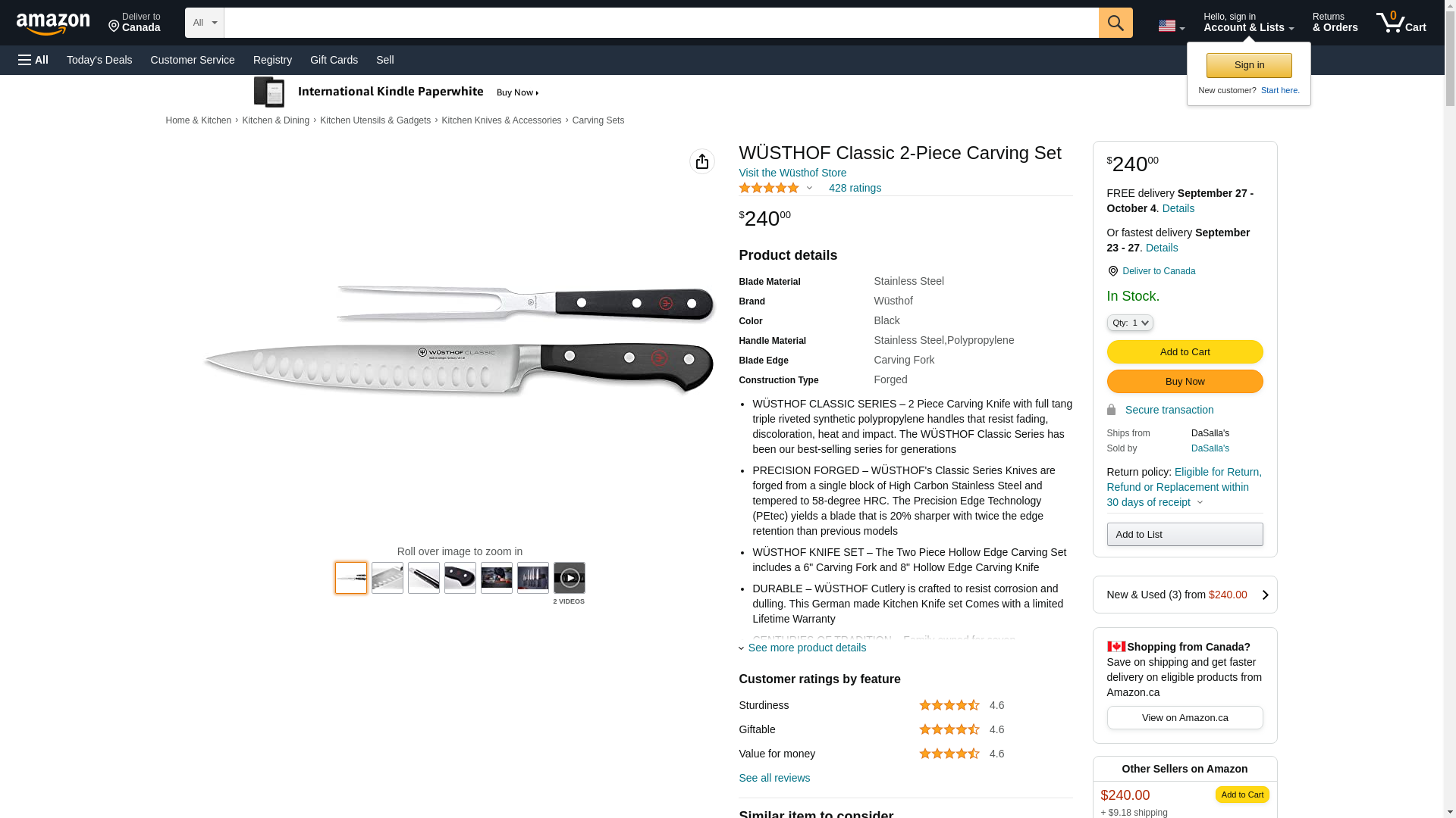 9740-1 Features: -Classic collection. -2 Piece carving knife set. Blade Material: -High carbon stainless steel. Handle Material: -Plastic. Number of Items Included: -2. Pieces Included: -Carving fork/Carving knife. Dimensions: Overall Product Weight: -0.82 lbs.