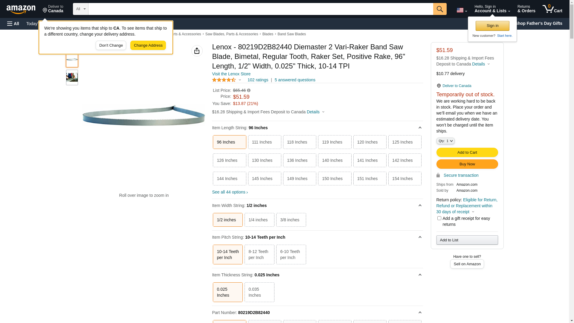 Lenox - 80219D2B82440 Diemaster 2 Vari-Raker Band Saw Blade, Bimetal, Regular Tooth, Raker Set, Positive Rake, 96" Length, 1/2" Width, 0.025" Thick, 10-14 TPI
