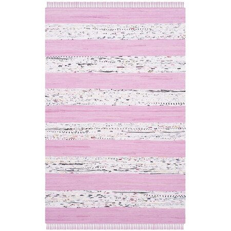 SAFAVIEH Montauk Collection Area Rug - 5' x 7', Ivory & Light Pink, Handmade Stripe Fringe Cotton, Ideal for High Traffic Areas in Living Room, Bedroom (MTK720E)