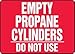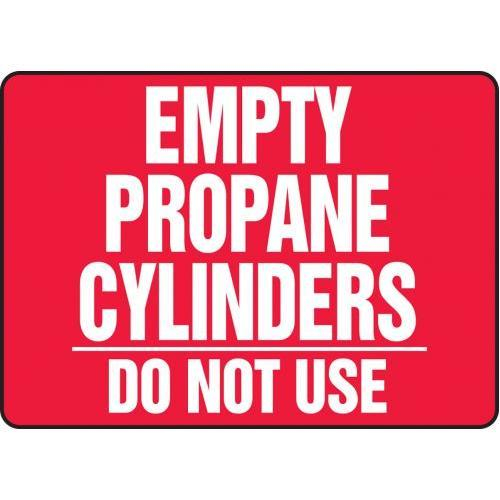 - <b>Mounting Style</b>: With Mounting Holes <b>UV Resistant</b>: Yes <b>Legend/Background Color</b>: White/Red <b>Legend Style</b>: Text <b>Legend</b>: Empty Propane Cylinders Do Not Use <b>Width</b>: 14" <b>Legend Color</b>: White <b>Material</b>: Plastic <b>Background Color</b>: Red <b>Item</b>: Cylinder Sign <b>Country of Origin (subject to change)</b>: United States