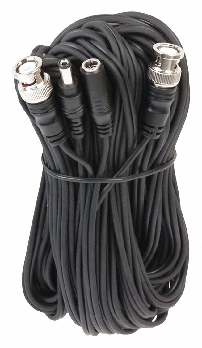'Cable, Height 5 In., Width 5 In., Length 50 ft., Black, Body Material Rubber, Power Source Cable, Fits Analog Cameras, Power BNC, Mounting Surface'