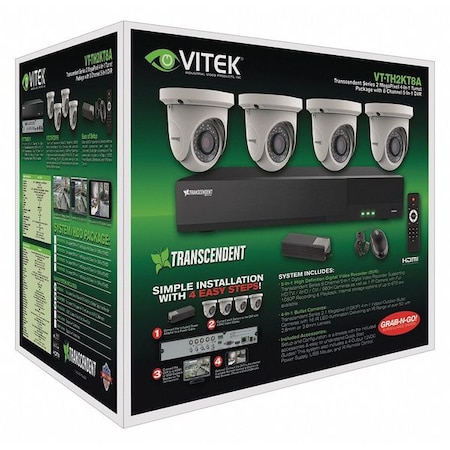 Vitek VT-TH2KT82TA-2 8 Channel 1080P 4-IN-1 (TVI/AHD/CVI/CVBS) DVR, 2TB with 4 X 2 Megapixel Turret/Ball Cameras, 2.8mm | 123 Security Products