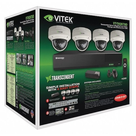 Vitek VT-TH2KT82TD-2 8 Channel 1080P 4-IN-1 (TVI/AHD/CVI/CVBS) DVR, 2TB with 4 x 2 Megapixel Dome Cameras, 2.8mm Lens | 123 Security Products