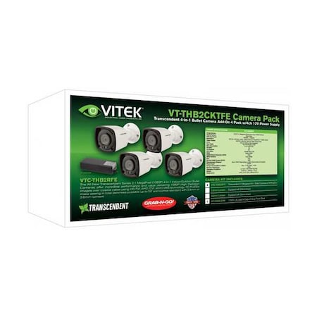 Vitek VT-THB2CKTFE-2 1080P Bullet Camera 4 x VTC-THB2RFE-2 & VT-1205A-D4K Power Block | 123 Security Products