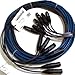 The Medusa Multitrack (MT) Series is designed to interface multitrack recorders or outboard equipment to mixing consoles. Each Multitrack Medusa is constructed of Whirlwind multipair cable with a heat-shrunk fanout at each end, and is available with optional Snakeskin for an extra charge. An alternative construction uses individually jacketed (IJ) Canare wire with Snakeskin fanouts standard. Each fanout can be specified with distinct connector types and signal polarity. When the same type of connector is specified at each end, wiring is pin to pin. Wire mesh hanger grips can be ordered as an option.