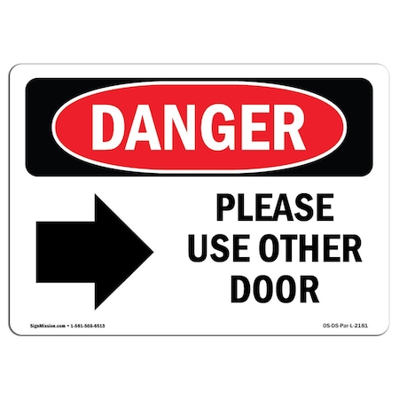 OSHA Danger Sign, Please Use Other Door, 24in X 18in Rigid Plastic