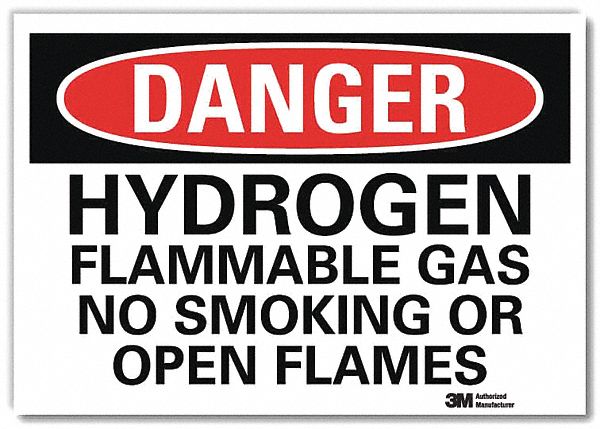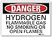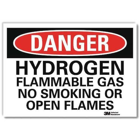 Danger No Smoking Sign, Horizontal Rectangle, Number of Printed Sides 1, English, Sign Format Traditional OSHA, Sign Legend Hydrogen Flammable Gas No Smoking Or Open Flames, Sign Legend Background Color White, Sign Legend Style Text
