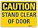 Safety Sign, Vertical Rectangle, Number of Printed Sides 1, English, Sign Legend Stand Clear Of Door, Sign Legend Background Color Yellow, Sign Legend Style Text