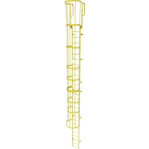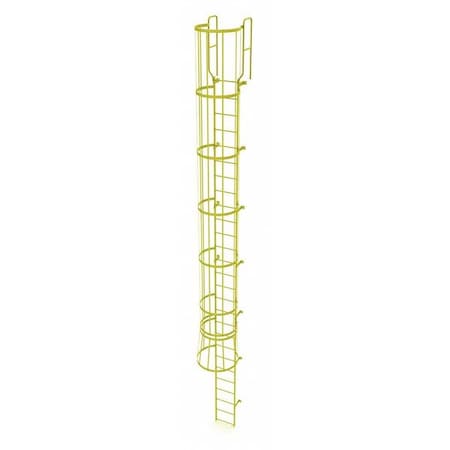 Tri Arc Mfg 27 Step Steel Caged Walk Through Fixed Access Ladder, Safety Yellow - WLFC1227-Y