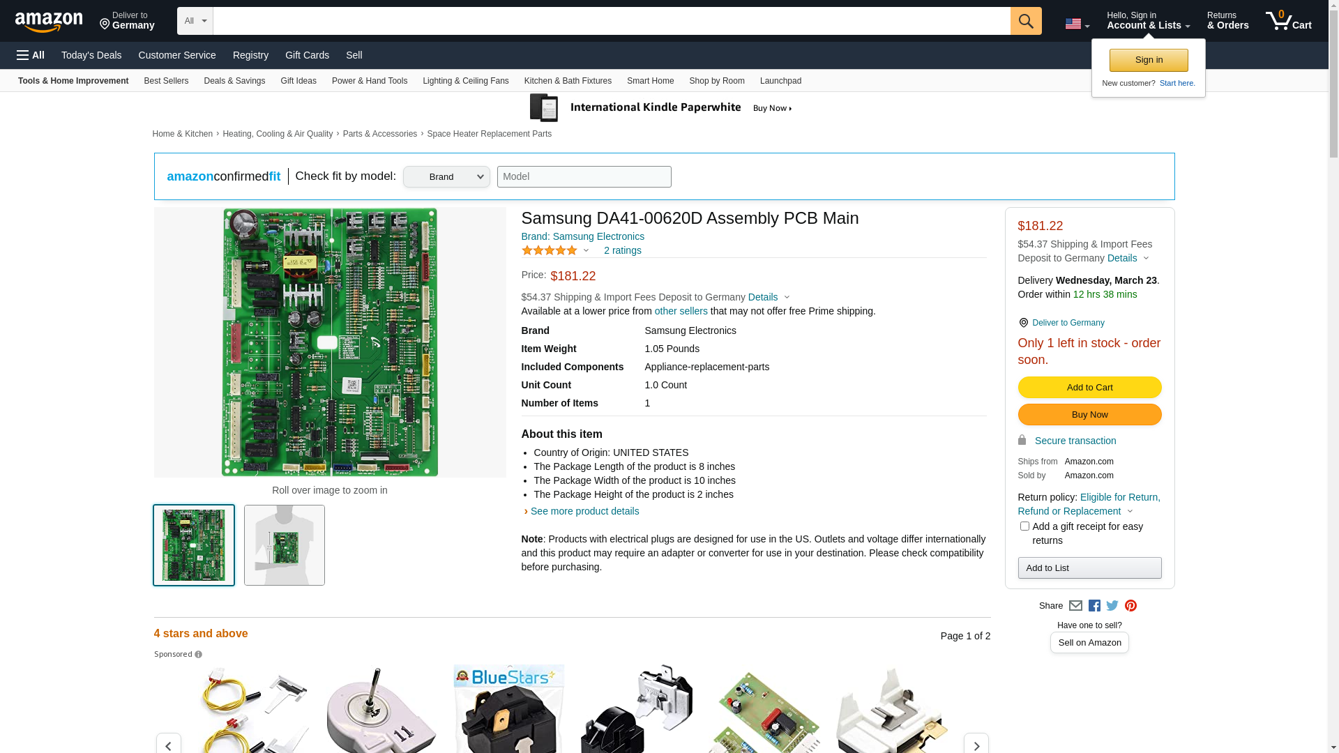 ![]() tvserviceparts.com | DA41-00620D | 1 | 1 | 1 @ $211.59 | |