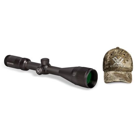<p>With long eye relief, a fast-focus eyepiece, fully multi-coated lenses and resettable MOA turrets, there's no compromising on the Crossfire II. Clear, tough and bright, this riflescope hands other value-priced riflescopes their hat. The hard anodized single-piece aircraft-grade aluminum tube is nitrogen purged and o-ring sealed for waterproof/fogproof performance. Dead-Hold BDC Reticle Customized dot design helps eliminate guesswork on holdover and windage corrections. Good for hunting/shooting at varying ranges where estimating holdover is a concern. Fully Multi-Coated Increases light transmission with multiple anti-reflective coatings on all air-to-glass surfaces. Second Focal Plane Reticle Scale of reticle maintains the same ideally-sized appearance. Listed reticle subtensions used for estimating range, holdover and wind drift correction are accurate at the highest magnification. Single-Piece Tube Maximizes alignment for improved accuracy and optimum visual performance, as well as ensures strength and waterproofness. The tube us purged with argon gas to prevent fogging in extreme temperatures, too. Aircraft-Grade Aluminum The Vortex Diamondback is constructed from a solid block of aircraft-grade aluminum for strength and rigidity. Its rugged construction makes it resistant to recoil and impact so it will maintain accuracy when used with even the most powerful rifles.</p> <p><b>Bundle Includes:</b></p> <ul> <li>Vortex Crossfire II 6-18x44 AO BDC w/sunshade Riflescope</li> <li>Vortex Realtree Camo Cap</li> </ul> <br /> <br />