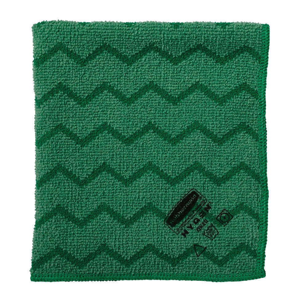 Rubbermaid Commercial Products Reusable Cleaning Cloths, 16-Inch x 16-Inch, Green, Microfiber Cleaning Cloth for Glass/Wood/Stainless Steel/Granite/Leather in the Home/Kitchen/Bathroom