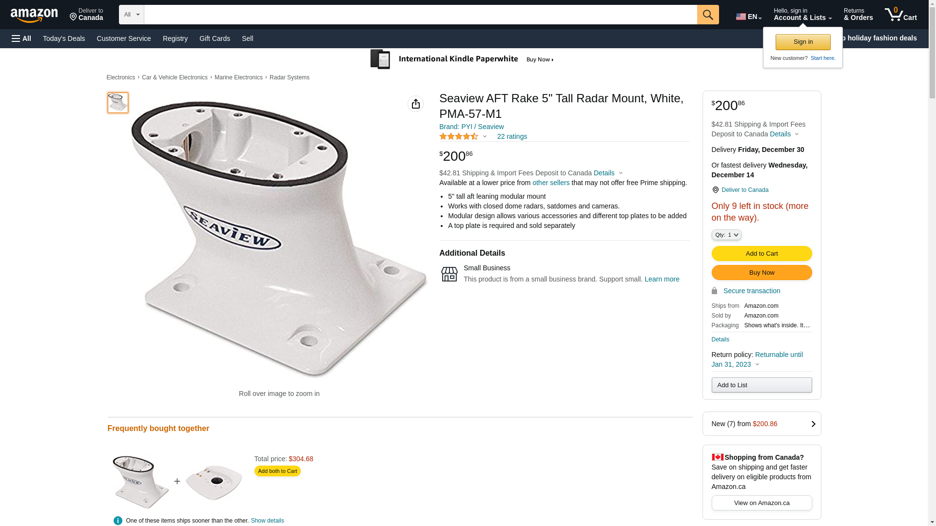 Seaview SVW-PMA-57-M1 AFT Rake 5" Tall Radar Mount, White,