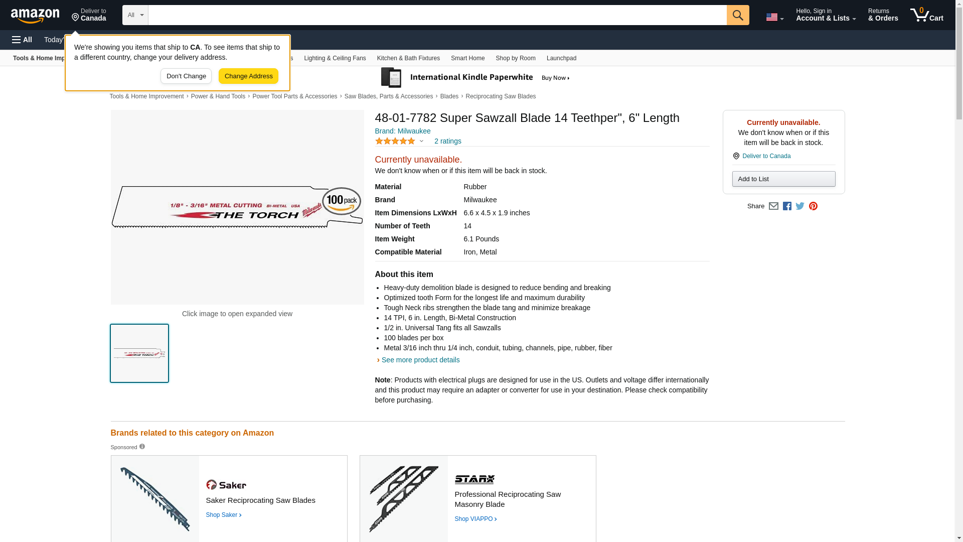 | Feature | The product is 6"14T Torch reciprocating Blade |