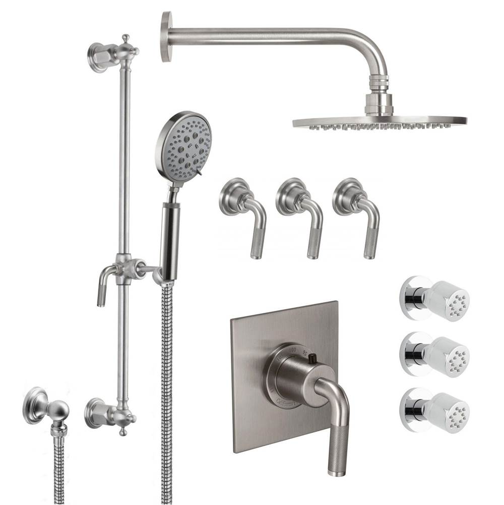 California Faucets - KT08-30K.20-PC - Descanso StyleTherm? 3/4'' Thermostatic Shower System with Body Spray, Handshower on Slide Bar, and Showerhead