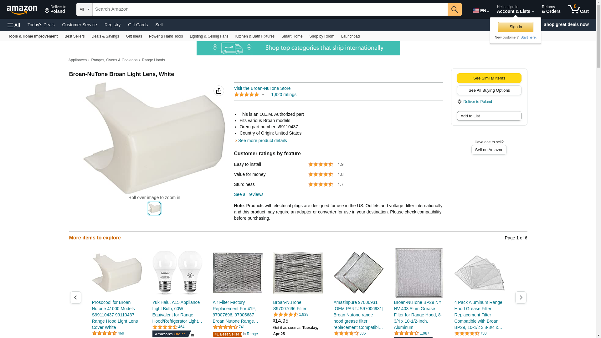 S99110437-BROAN-NuTone S99110437 Lens - Industrial Stores