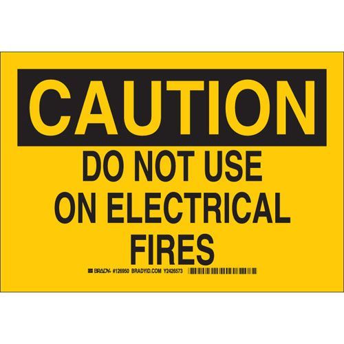 Brady 126951 CAUTION Do Not Use On Electrical Fires Sign - Non-reflective Aluminum - Black on Yellow - 10 x 14
