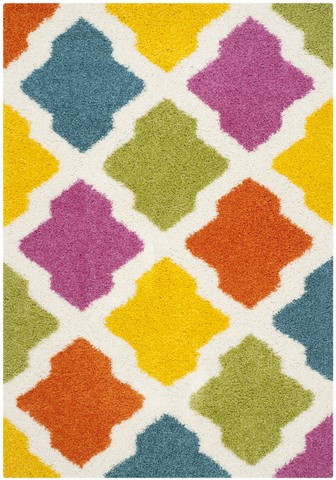 SAFAVIEH Kids Shag Collection Area Rug - 5'3" x 7'6", Ivory & Multi, Rainbow Trellis Design, Non-Shedding & Easy Care, 2-inch Thick Ideal for High Traffic Areas in Living Room, Bedroom (SGK562A)