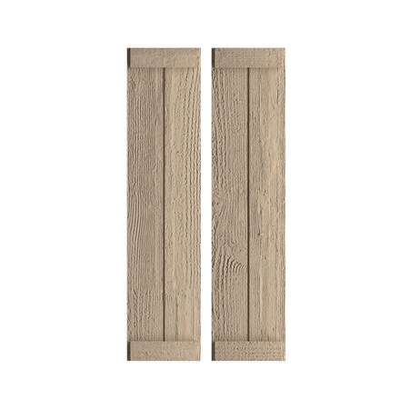 Ekena Millwork SHUBJE Faux Wood Shutters (Per Pair) Rustic Joined Board-n w/End Batten, 16 1/2"W x 60"H, Rough Sawn