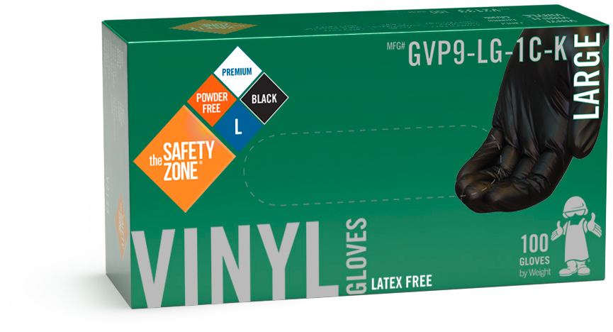 Gloves. Vinyl. Medium Size. Powder-Free, Black Color. 100 Gloves/Box, 10 Boxes/Case. 1,000 Gloves/Case.