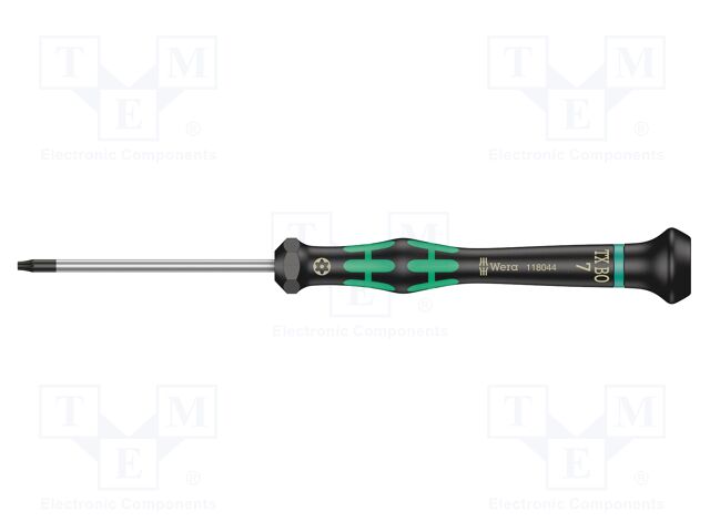 WERA 05118044001 2067 TORX® BO Screwdriver for Tamper-Proof TORX® Screws for Electronic Applications, TX 7 x 60 mm