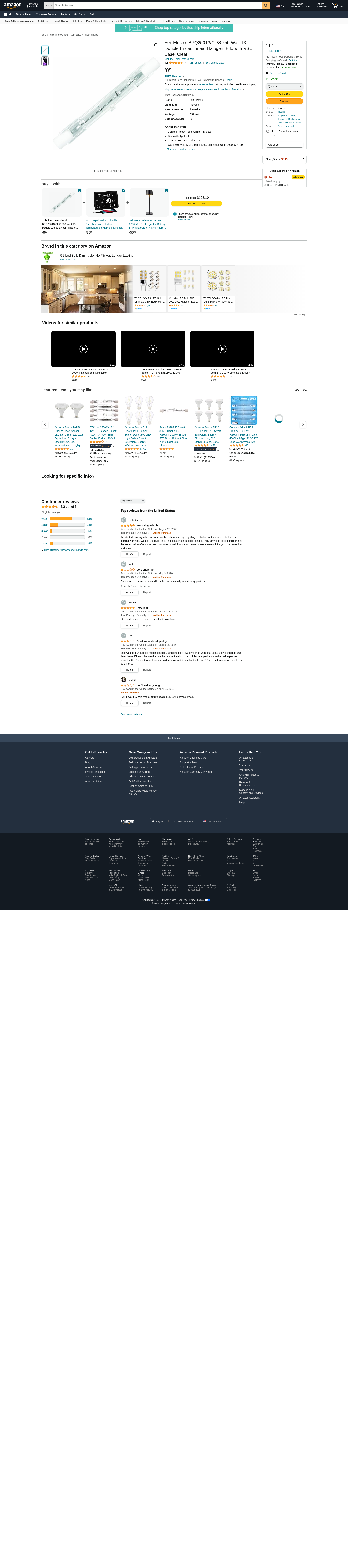Feit Electric Bpq250t3/Cl/S Double Ended T3 Halogen Quartz Light Bulb