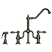 - Twisthaus bridge faucet with long traditional swivel spout, lever handles and solid brass side spray