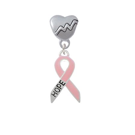 Silver Tone Pink Ribbon "Hope" - Heartbeat Charm Bead Hanger. Silver Tone Charm. Charm size is approx. 0.81 x 0.46 x 0.15 inches (HxWxD) including loop. Charm Hanger Bead is approx. 13x13x10 mm (HxWxD) Hole size 5.5 mm. Our Charm Beads are compatible with most Charm Bead Bracelets. Also makes a great charms pendant. Featured charms is an exclusive Delight & Co. design. We are a family owned company for over 35 years in the U.S.A. PLEASE NOTE: Our products are lead safe, but are not intended for children 14 years and younger.