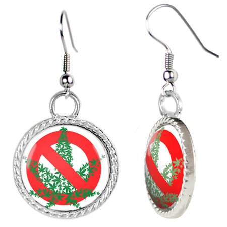 No Cannabis Allowed Illustration Earrings. The image is displayed under photo-optic quality acrylic for a perfectly clear glossy image that is also protected from wear and tear. The French hooks are Sterling Silver Plated for the ultimate anti-allergic finish. Ask us about our custom earrings. We can do almost any image you may like, including your family pet, new baby or vacation photo. 100% hand crafted in the USA. SKU #34931