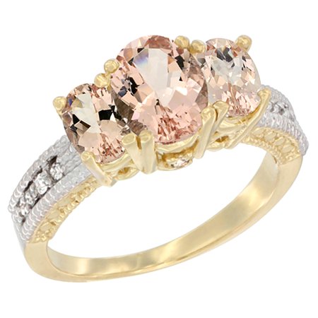 14K Yellow Gold Diamond Natural Morganite Oval 3-stone Ring, sizes 5 - 10