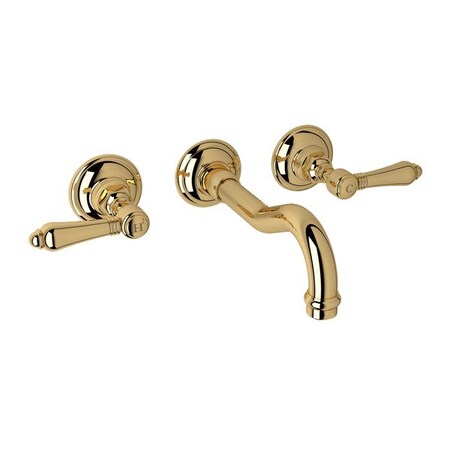 ROHL ITALIAN BATH ACQUI TRIM SET ONLY WITH NO ROUGH VALVE BODY TO WALL MOUNTED THREE HOLE WIDESPREAD LAVATORY FAUCET WITH METAL LEVER HANDLES AND 8 1/2" REACH COLUMN SPOUT IN ITALIAN BRASS